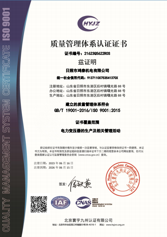 日照市鴻泰機電有限公司證書中文帶標(biāo)QMS