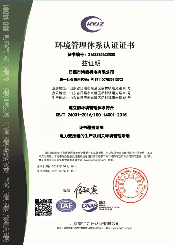 環(huán)境-日照市鴻泰機電有限公司證書中文帶標(biāo)EMS