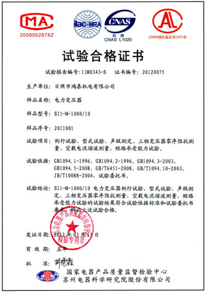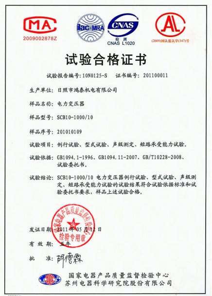 干變試驗合格證書